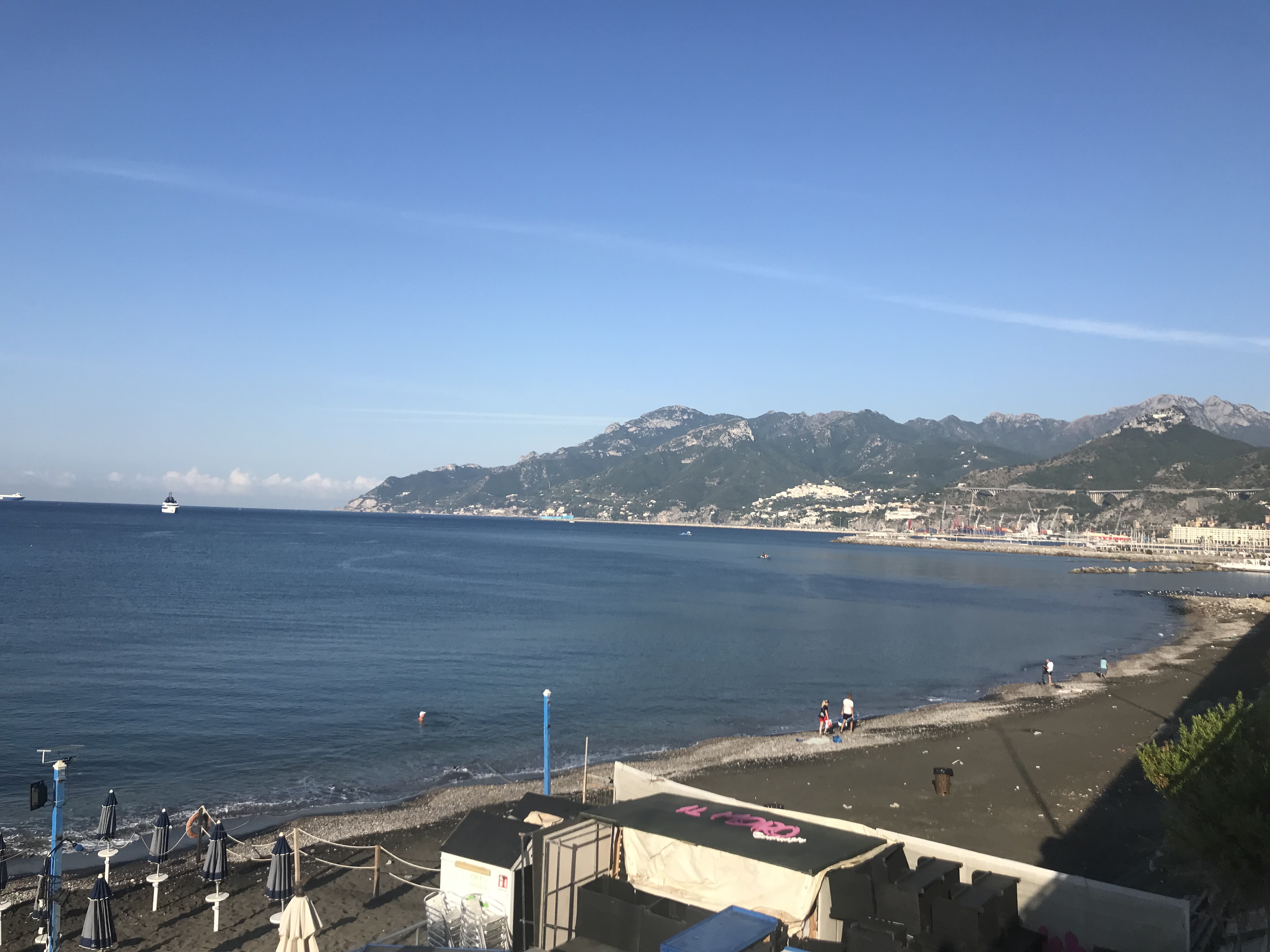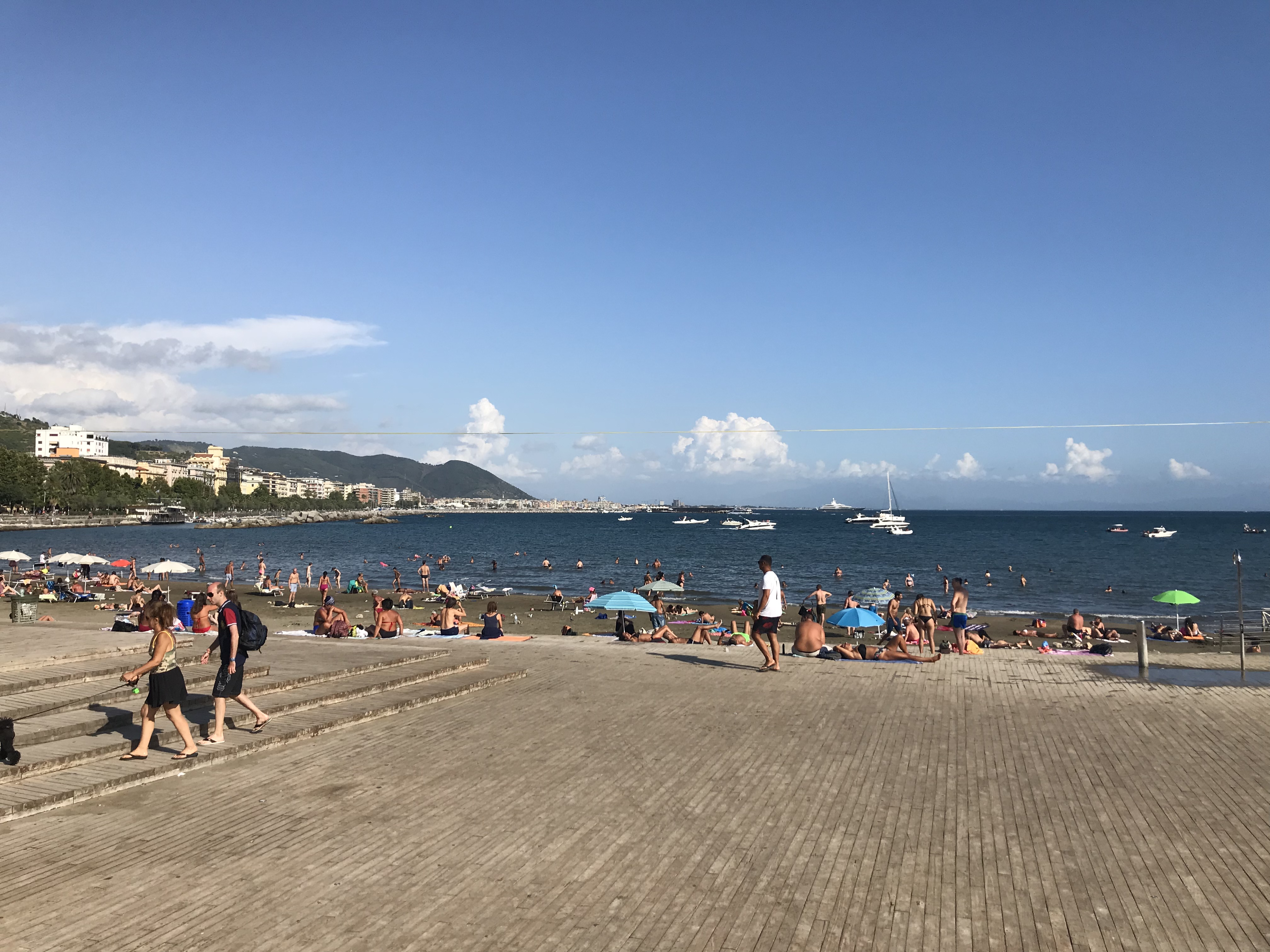 Today and for the remainder of our holiday, we were determined not to do a lot. Our final day of Rome, rampaging around the ancient ruins was quite frankly enough and now it was time to relax! So relax we did, on the small beach of Salerno. This town is better known as having a port but a small public beach is still available. It’s not as nice as Santa Marinella, the beach we visited outside of Rome; it’s busier, smaller and not as clean but it was perfect for what we needed.