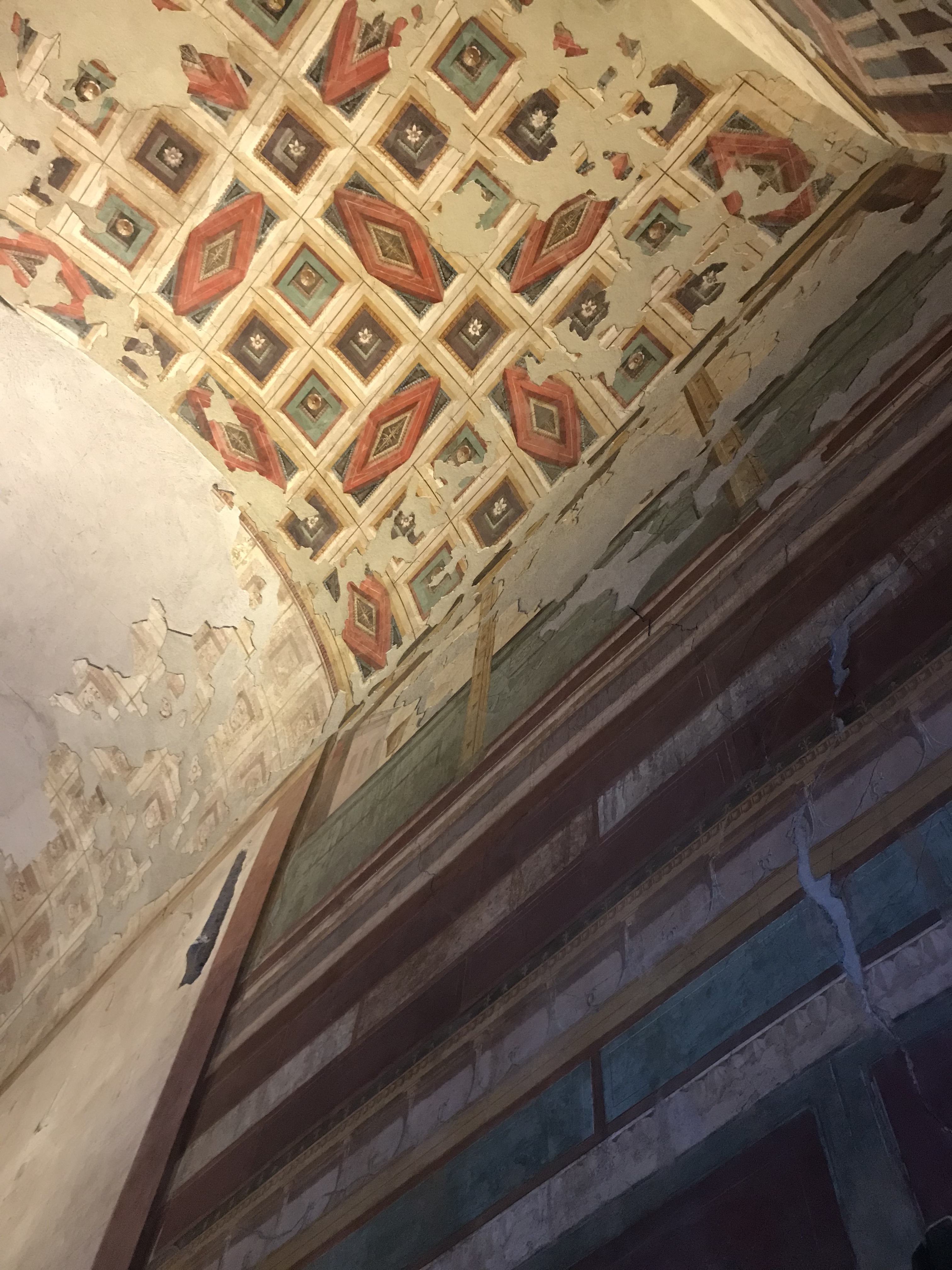 At every turn, there was something else to help paint the image of the life the Ancient Romans led here, and anyone with an imagination could absolutely visualise being here, in a thriving, bustling, affluent city. To stand in the house of Rome’s first emperor, Augustus, and his wife Livia and to walk along the same mosaic flooring they did was pretty overwhelming. I didn’t expect it to touch me like it did. Thankfully, Augustus made many changes to his residences and these rooms we stood in were so well-preserved because he buried and built over them to create a Temple of Apollo. Sat underground for years, these original houses were eventually unearthed and restored. Even the frescoes and painted ceilings remain intact, the vibrancy if the colours still visible. These were clearly houses intended to impress neighbours and visitors alike.
