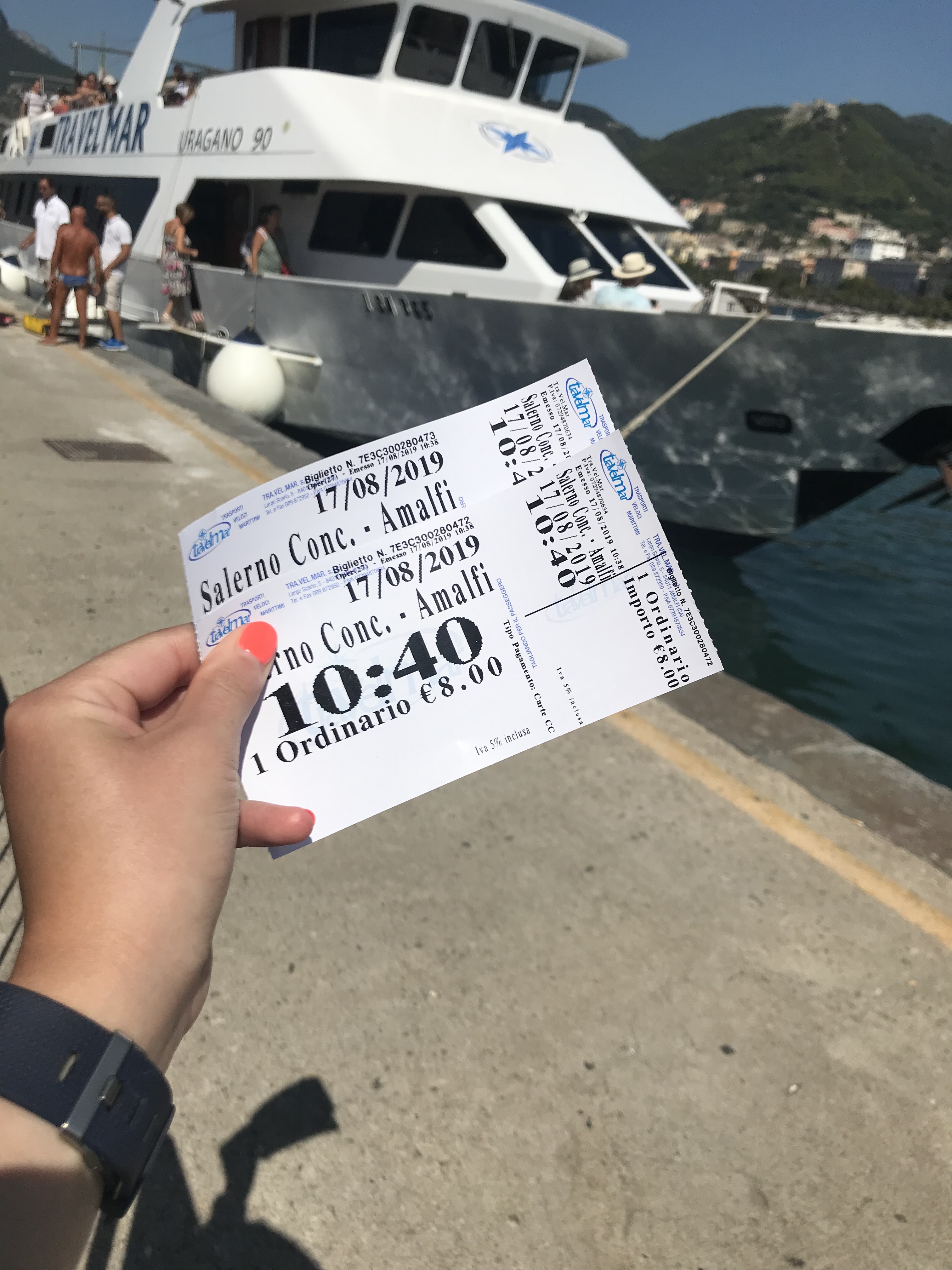 By this point, our lack of energy probably attributed to having survived off no more than some watermelon, fresh coconut and some juicy peaches all day. When we got back to Salerno (check the latest times water taxis and ferries return to your destinations, they are not late) we could only think about food. Yes, we were wasting away!