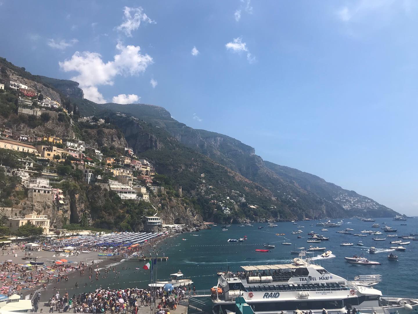 The coastal views on the ferry to Positano, our chosen beach for the day, are sublime and you can’t imagine there is one spot on the whole of the Amalfi Coast that isn’t an absolute dream to see. I challenge anyone to take a ‘bad’ photo of these colourful, quaint towns nestled in the side of the hills; I just don’t think it is possible.