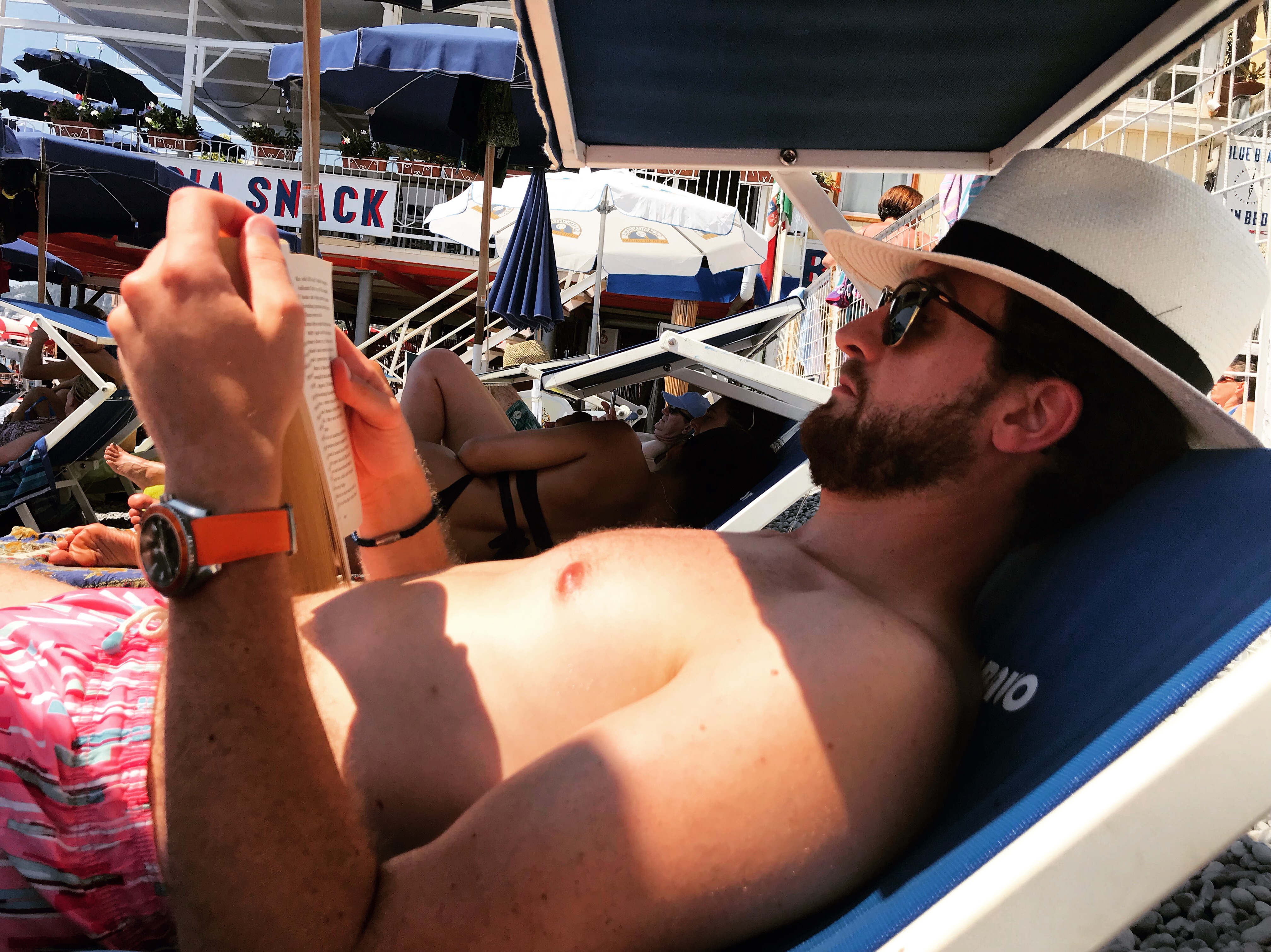 What heaven and joy awaited us as we walked less than 5 minutes from the station to the beach. Beautiful sand, the clearest of water and life-giving sun! For €34 we bought two sun beds and a parasol for the day (the beach is private so expect to pay for the pleasure!) and quite frankly it was the best €34 we could have spent!
