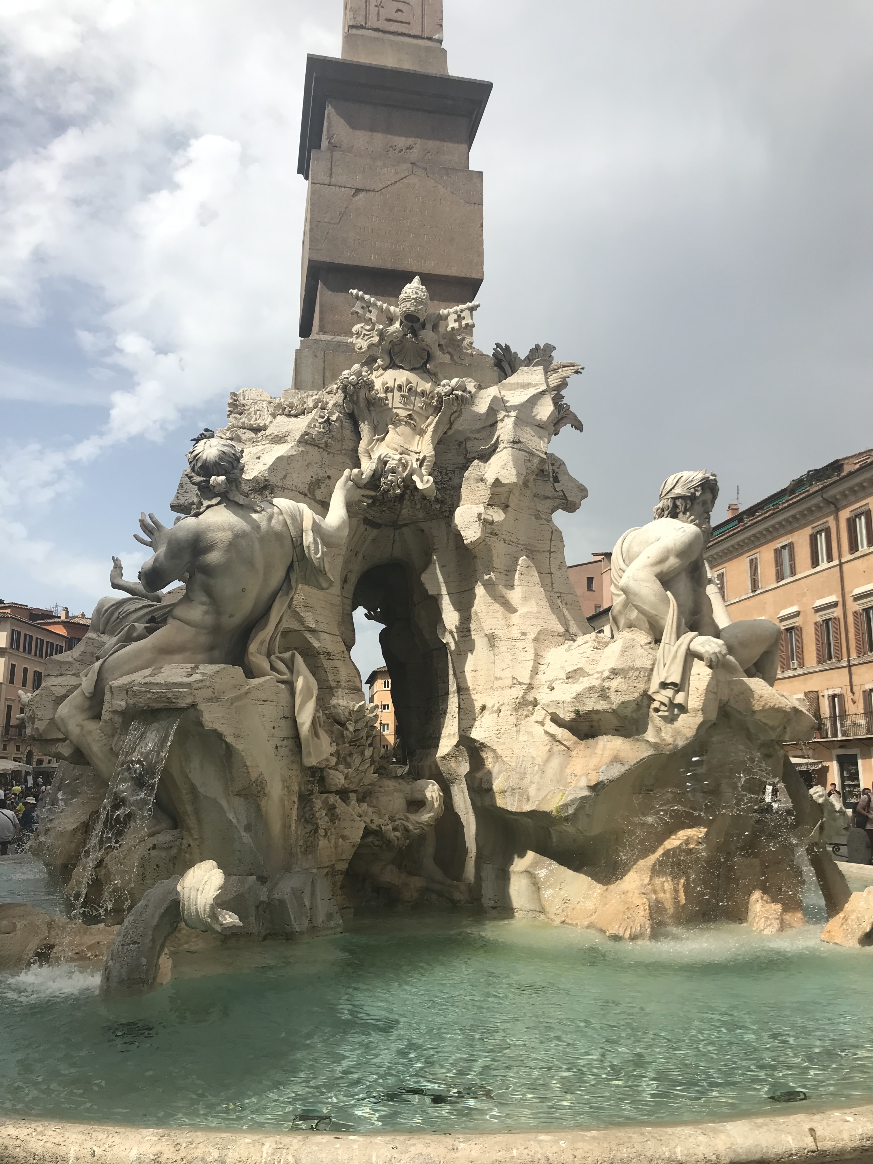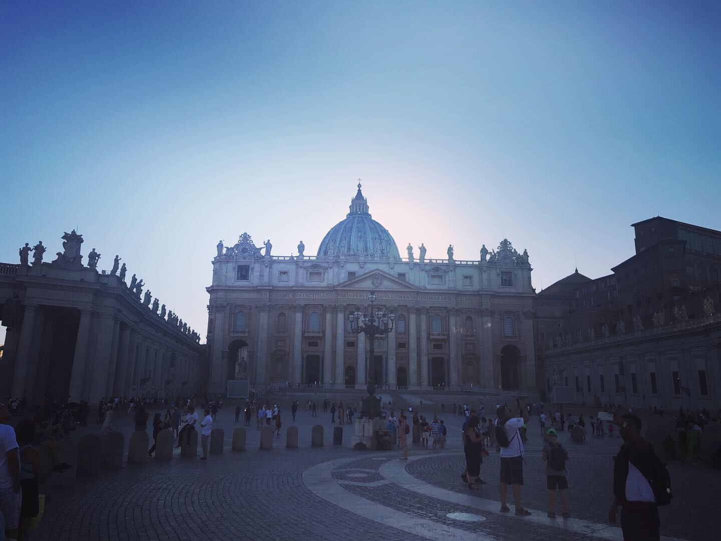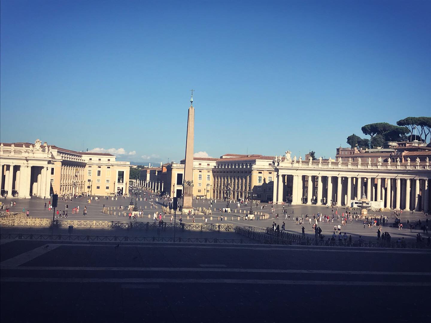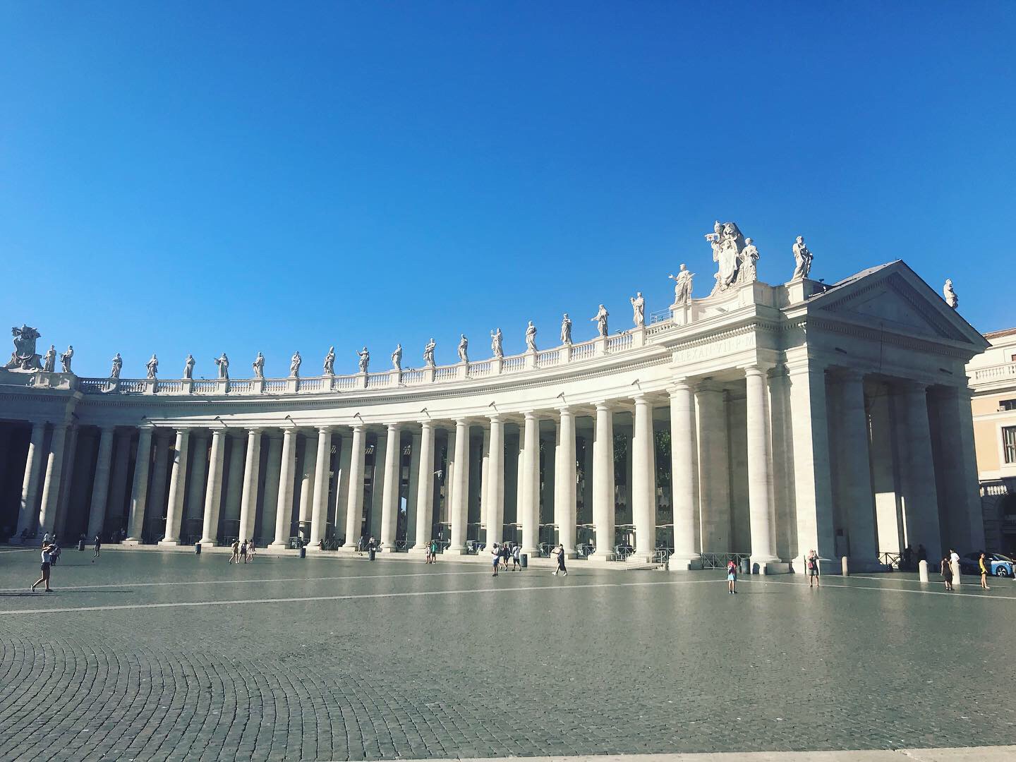 St. Peter’s square is amazing. The hustle and bustle of vendors fobbing fake rosary beads and holy water is entertaining and bizarre. The men selling scarves also make a killing from the unprepared women who wear spaghetti straps or no straps at all! The imposing columns topped with marble statues of previous popes are so huge, you can hardly imagine how they got all the way up there in the first place!