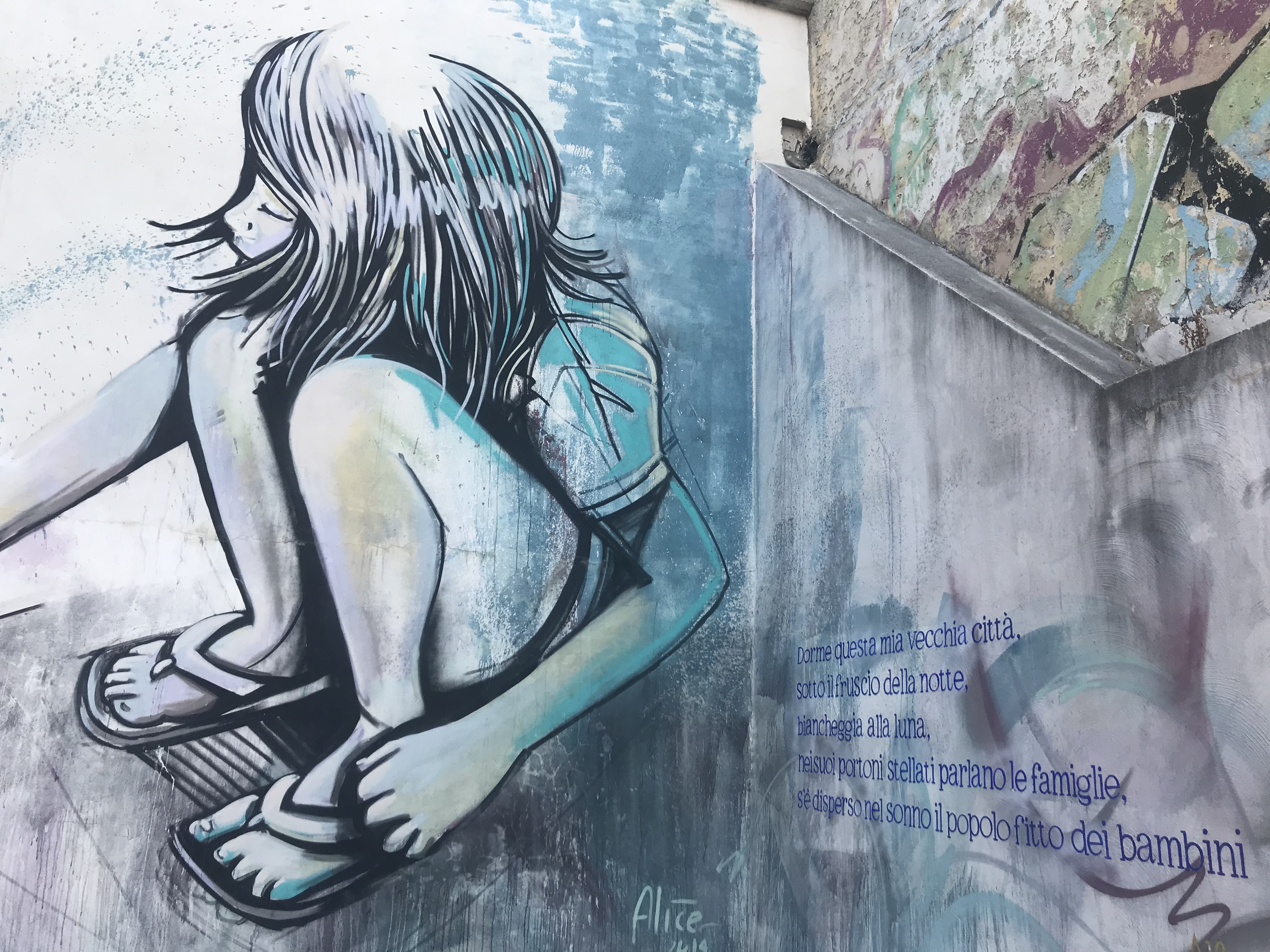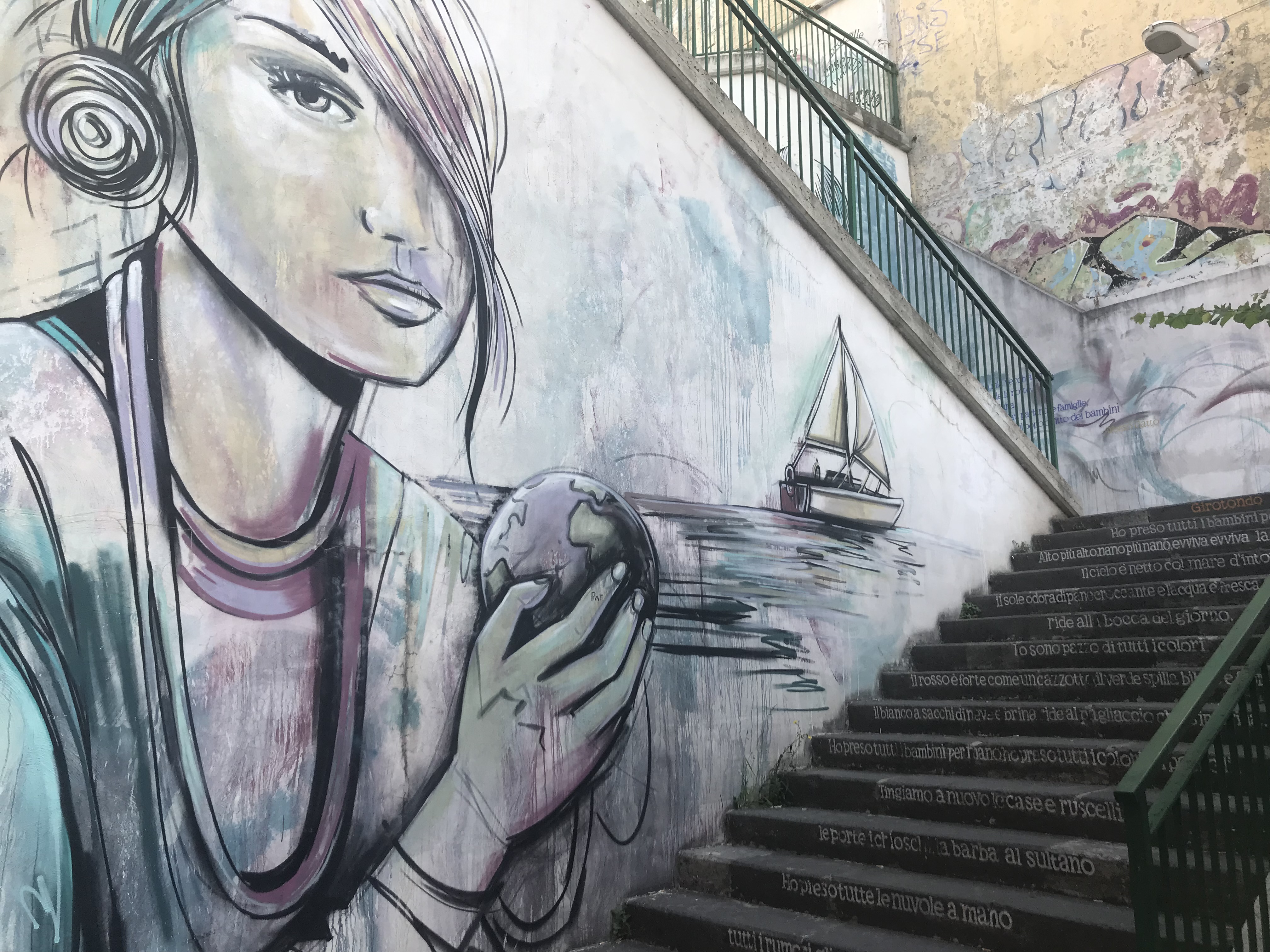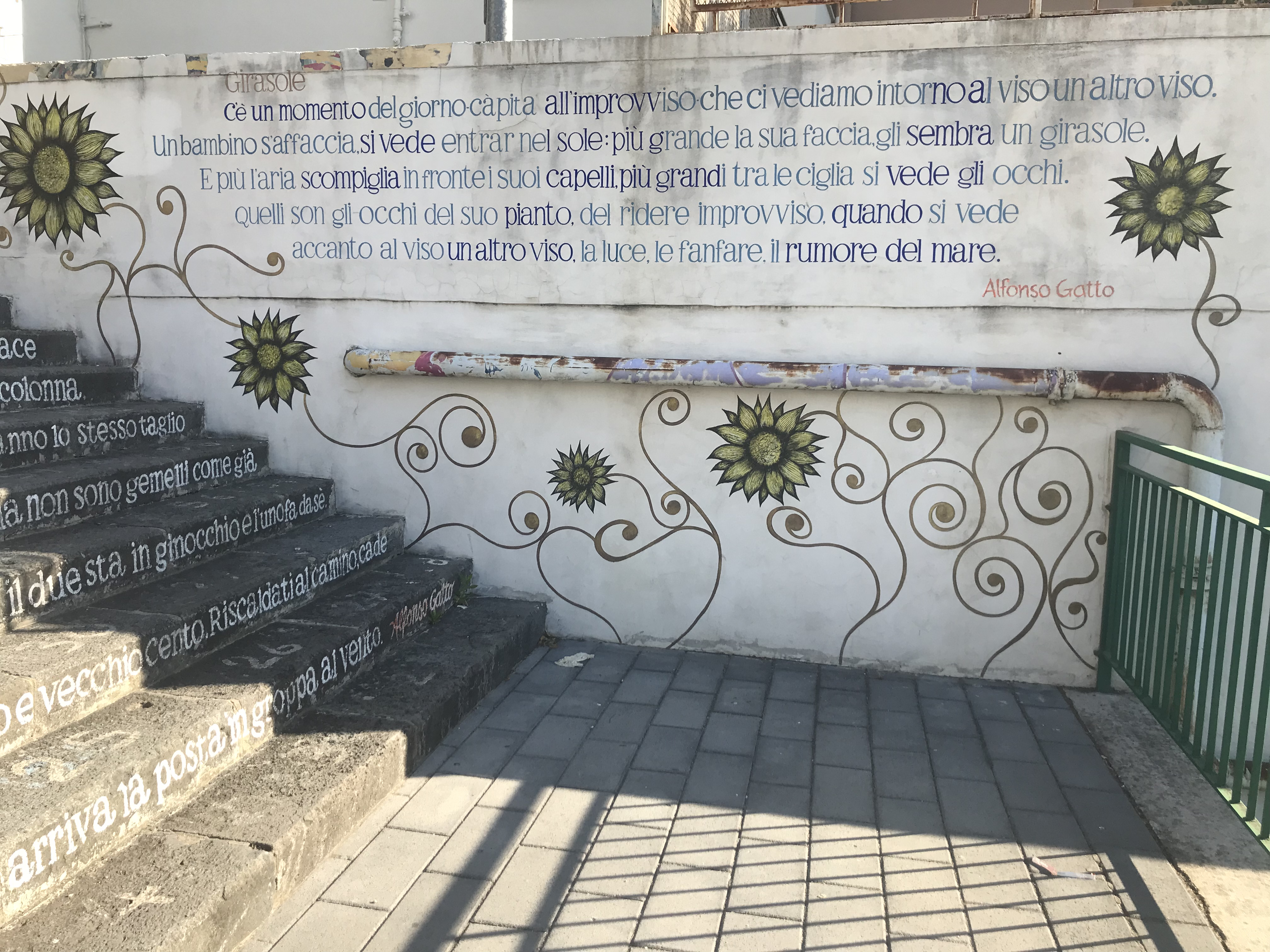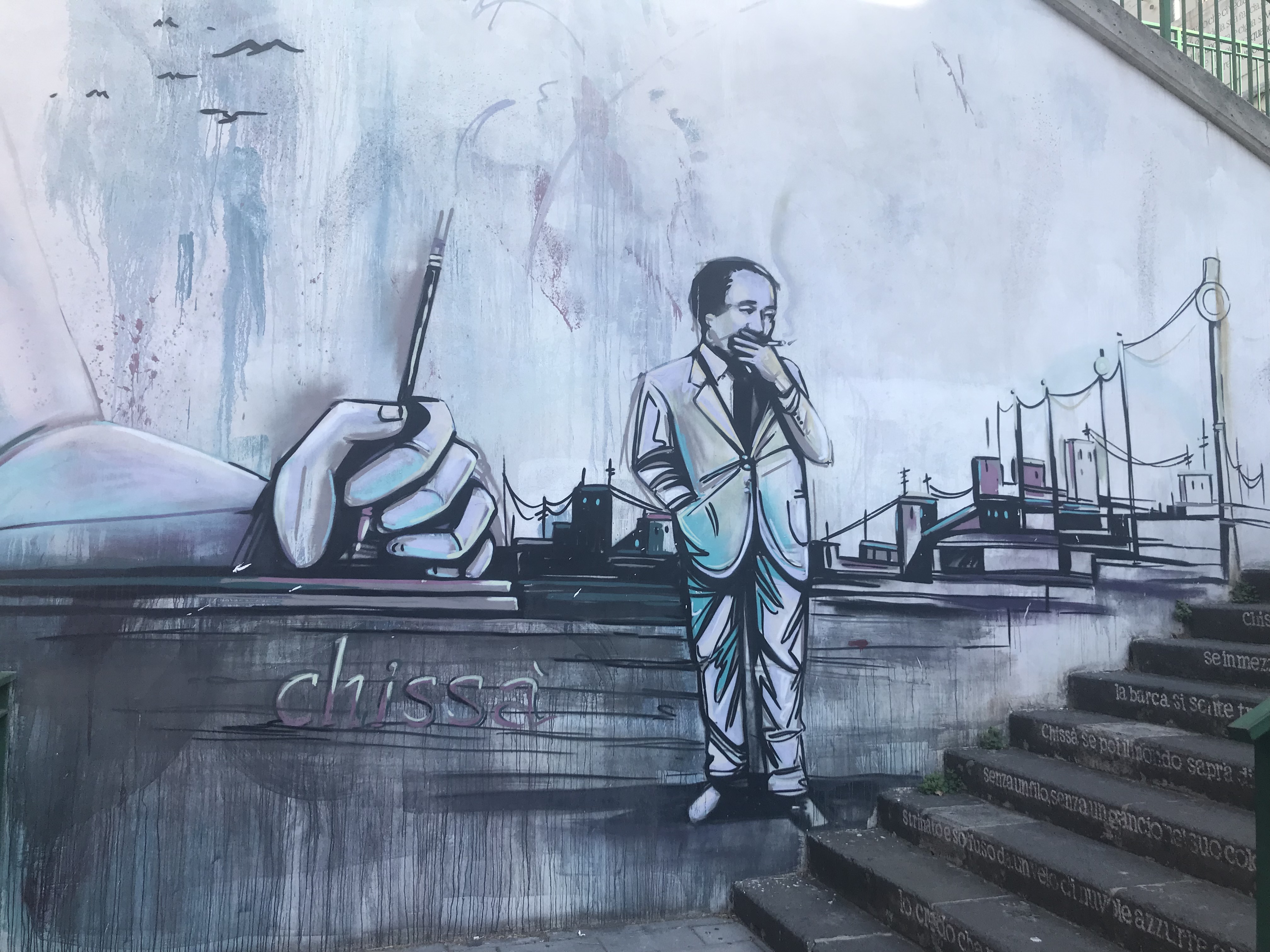 The minute we arrived in to Salerno, we had a good feeling about the place. In the first 10 minutes of walking to our apartment, we saw more restaurants that took our fancy than in the 4 days we spent in Rome. At last we were back in food heaven territory! You also notice straight away, the amount of street art and graffiti in Salerno. Here is a taster of some by Alfonso Gatto, that we passed while climbing some steps towards our apartment.