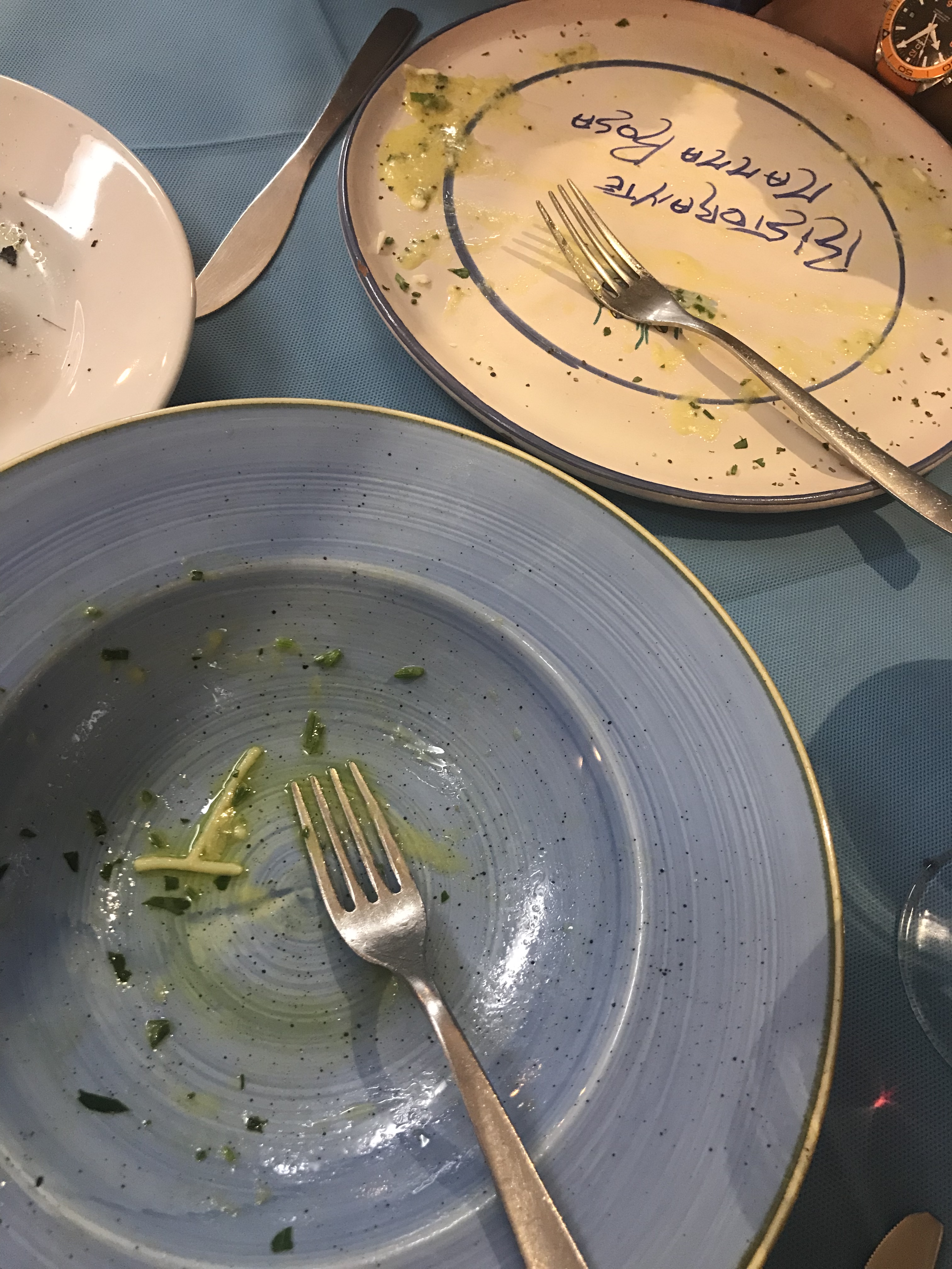 We both chose a pasta dish, one with goats cheese and cuttlefish for Nic, the other a classic spaghetti alla vongole i.e. clams. From the pictures of our empty plates, it’s reasonable to assume that they were both TO DIE FOR!