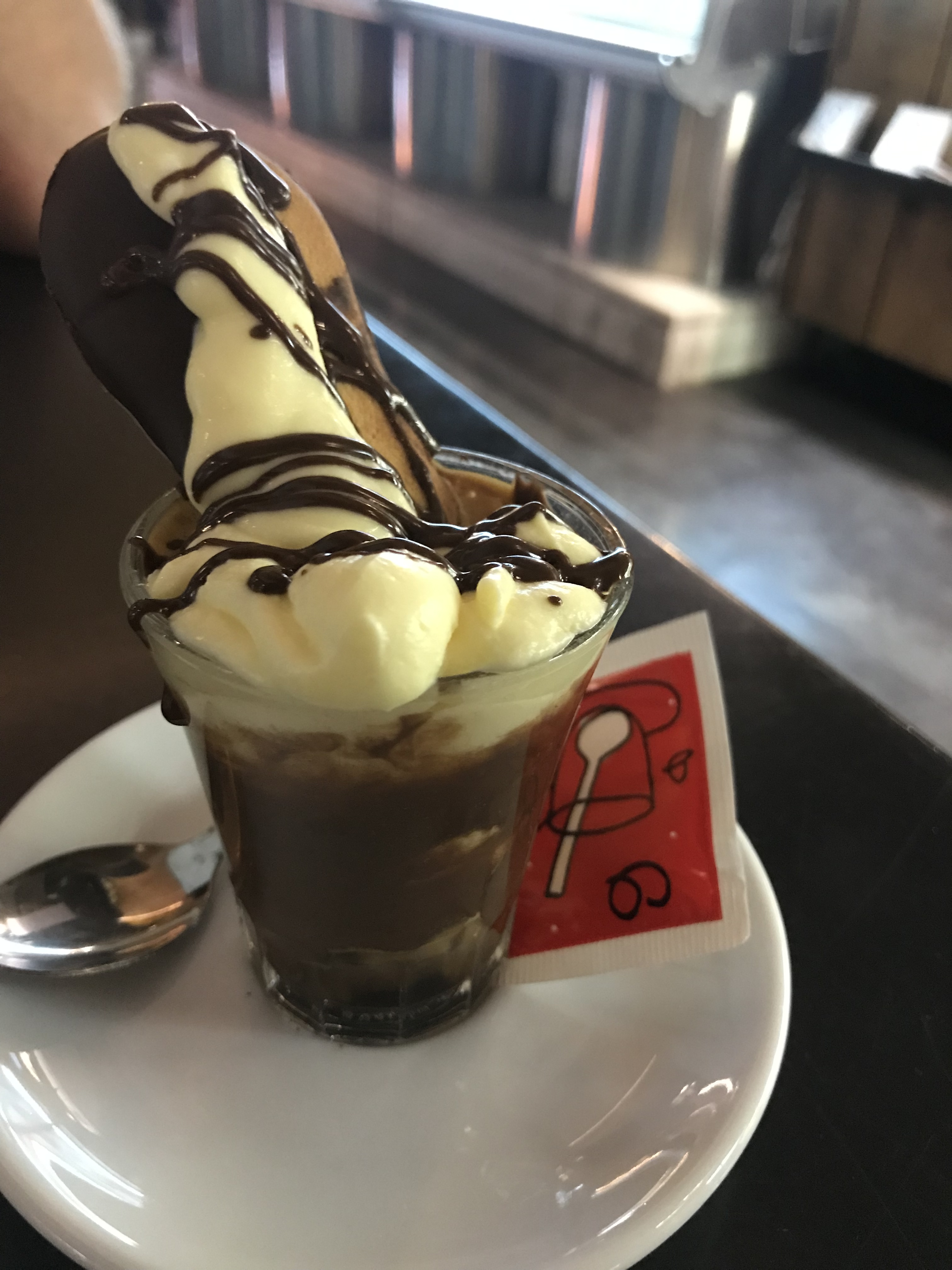 Once the sun had set, we went to a boat bar, moored up on the port. It looks swanky but the prices for food are similar to those back home. We each had a glass of white wine and some nibbles. Most importantly, we watched the lights of the harbour twinkling on the sea’s surface and crowds of people walking along and looking at the discounted sunglasses stalls or the children’s toys, all with flashing lights and annoying sounds! On the way home, we went past a place we had been told of, which specialises in ice-cream filled brioche, something we must try before we go!