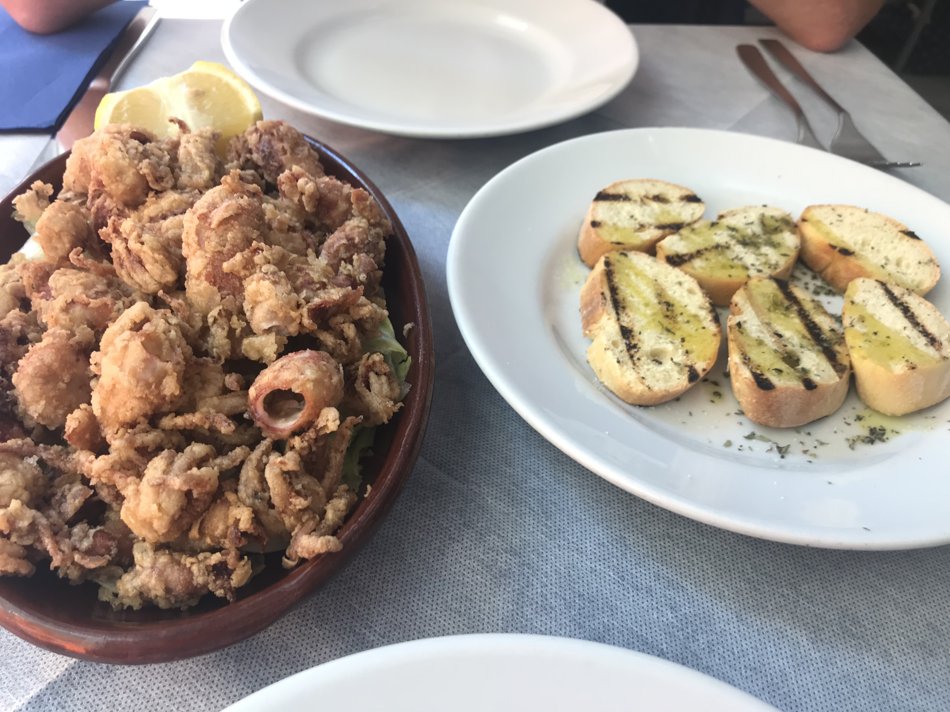 The waiter was keen to tell us about their fresh morning catch of baby squid and razor clams; we couldn’t resist and went for the former. We also shared some fried salt cod and a pasta dish with olives, capers and more fish. Being near the sea, it really would be rude to eat anything other than seafood and so we devoured every last bit of the plentiful dishes and wobbled our way out of the door!